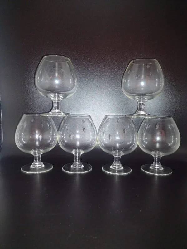 These chic 1950’s “Stardust” Brandy Snifters were designed by C. G. Quartzex Crystal and are sure to add sophistication and elegance to your home. Set of 6. Height 4.75 inches.