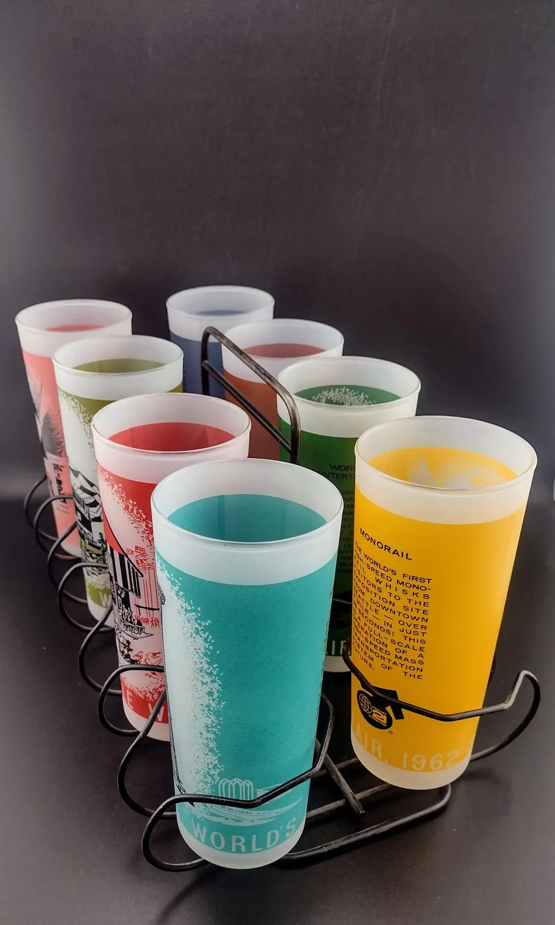 Made in the 1960s, Color Craft coated the clear glass tumblers with a rubber-like plastic, a process known as "plastisol" and the frosted texture was a side effect of the coating process. Today, vintage Shat-R-Pruf glasses are sought-after collectibles.