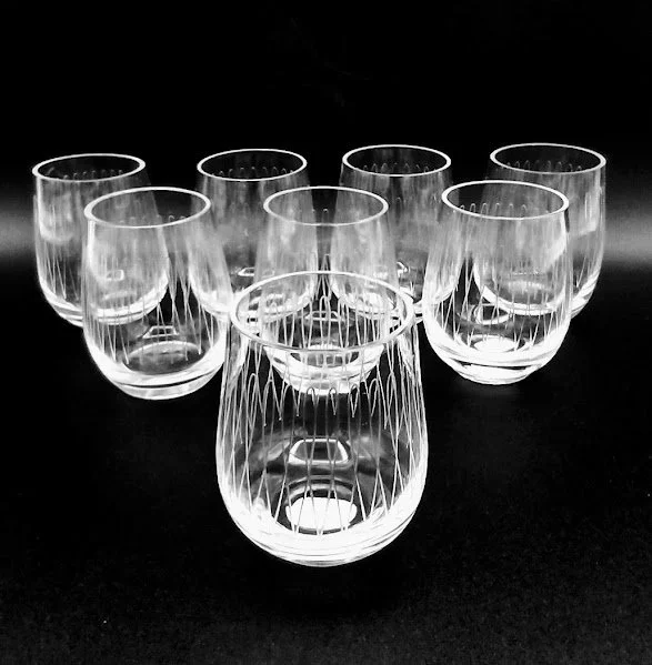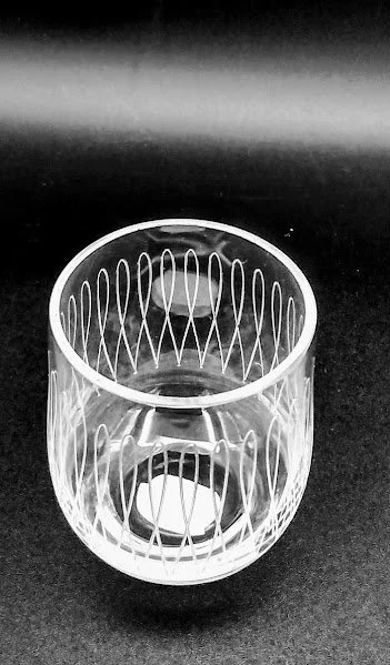 Color Craft manufactured "Shat-R-Pruf" spaghetti string Glassware in the 1960s. They feature a rubber-like plastisol coating over clear glass for shatter resistance, easy grip, and insulation. Theyr’re a fun and functional alternative to standard glassware.