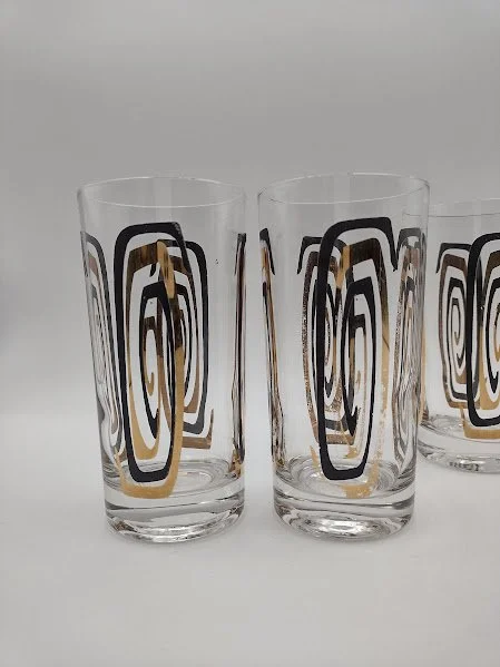 Such a fun set of Cutler Atomic Age Galaxy 22k Gold and Black Hiball Set of 4. Please see photos for condition.