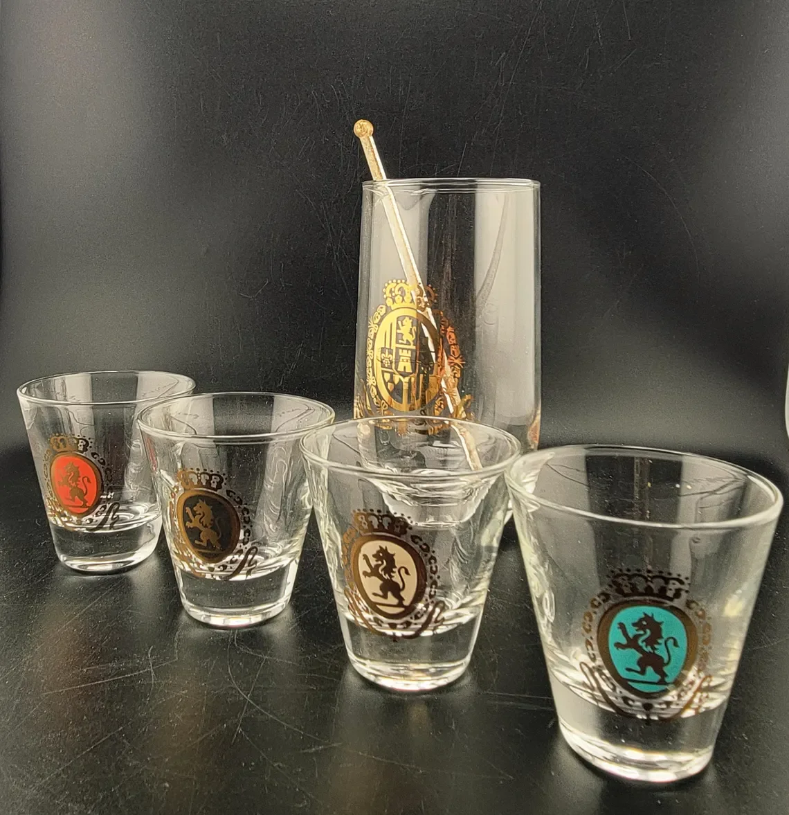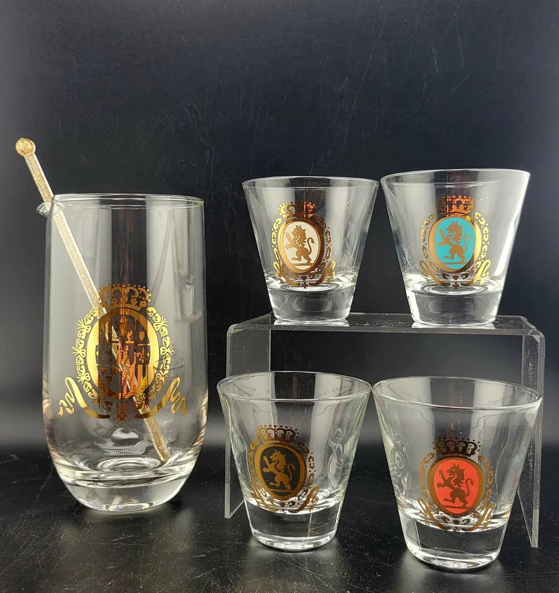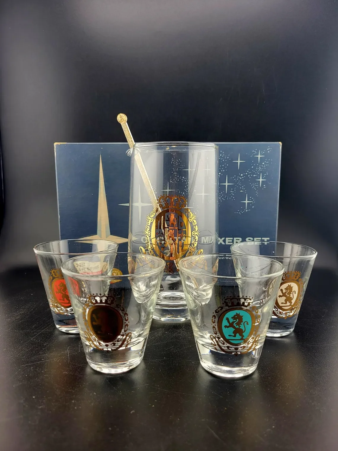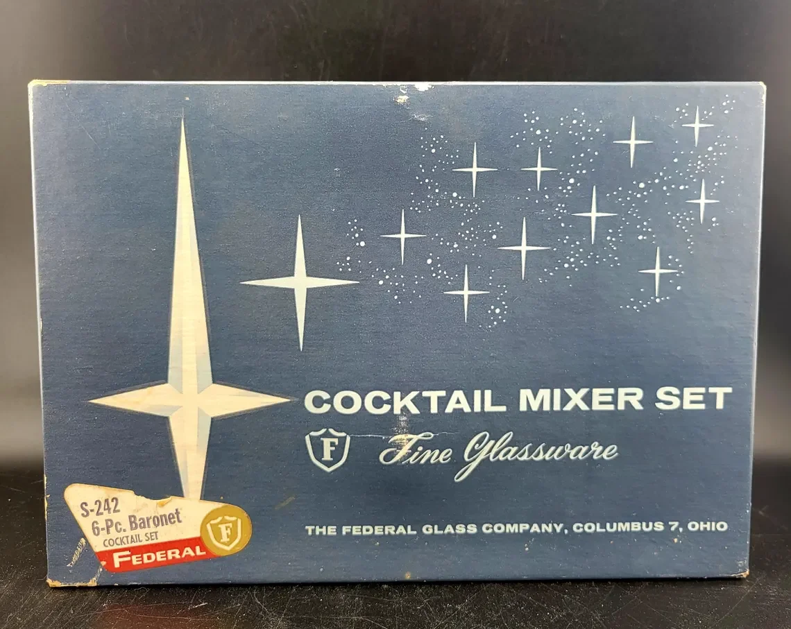 Federal Glass Baronet Cocktail Mixer & Rocks Glasses, set of 5 in Box