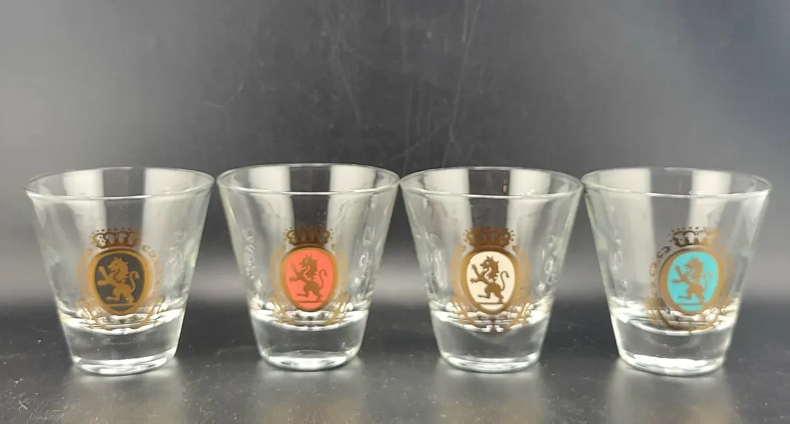 Add a touch of class to any event with the Federal Glass Baronet cocktail mixer with 4 rocks glasses. In wonderful condition, this set of 5 includes the original box. Cocktail Mixer height 6.25 inches, height of glass is 2.75 inches.