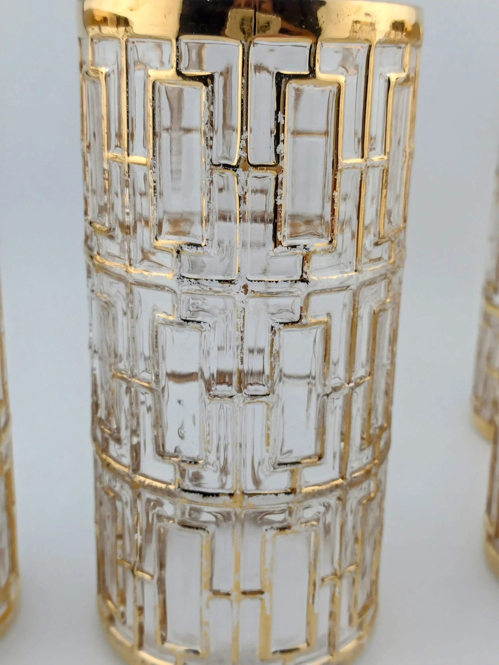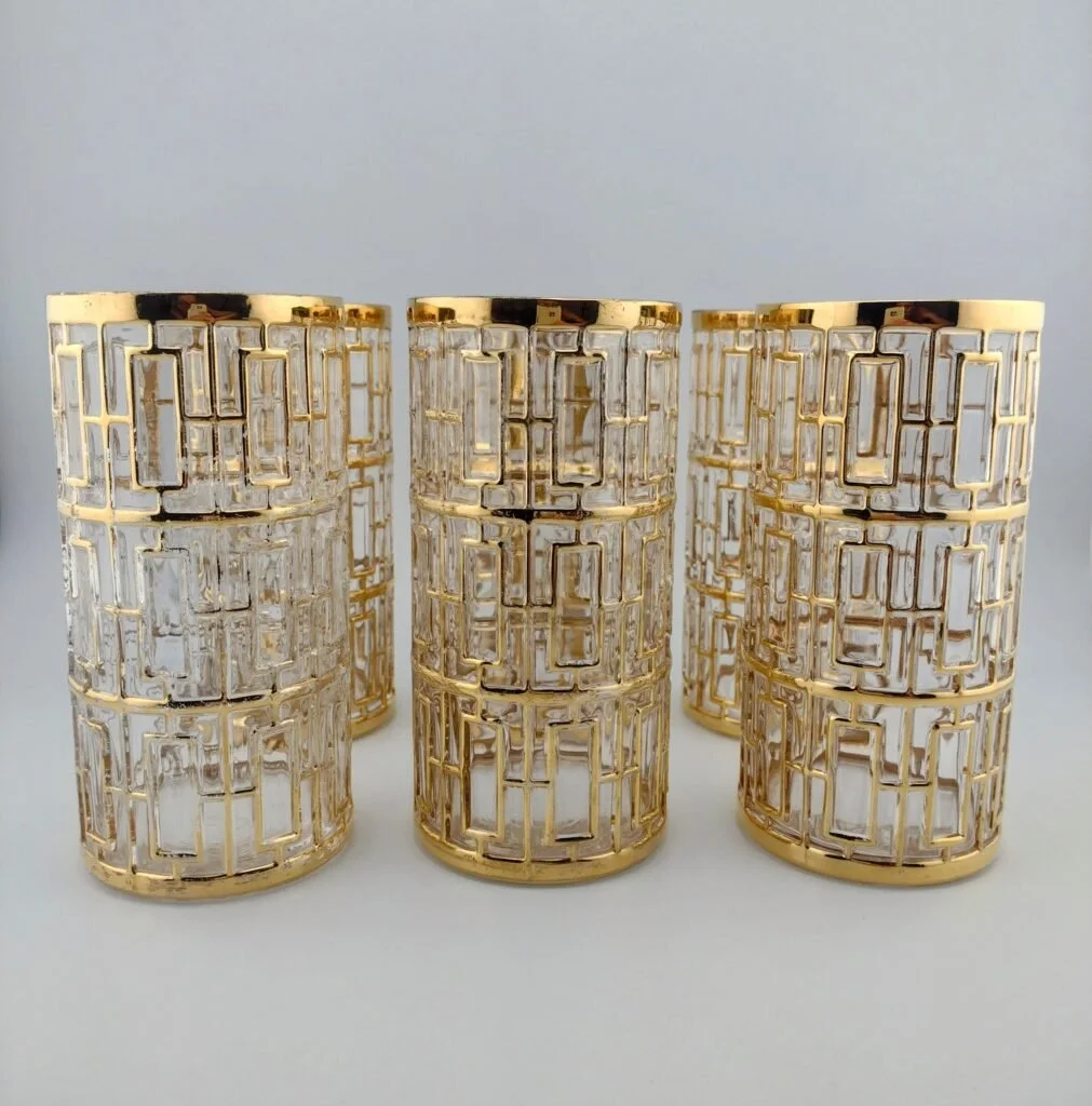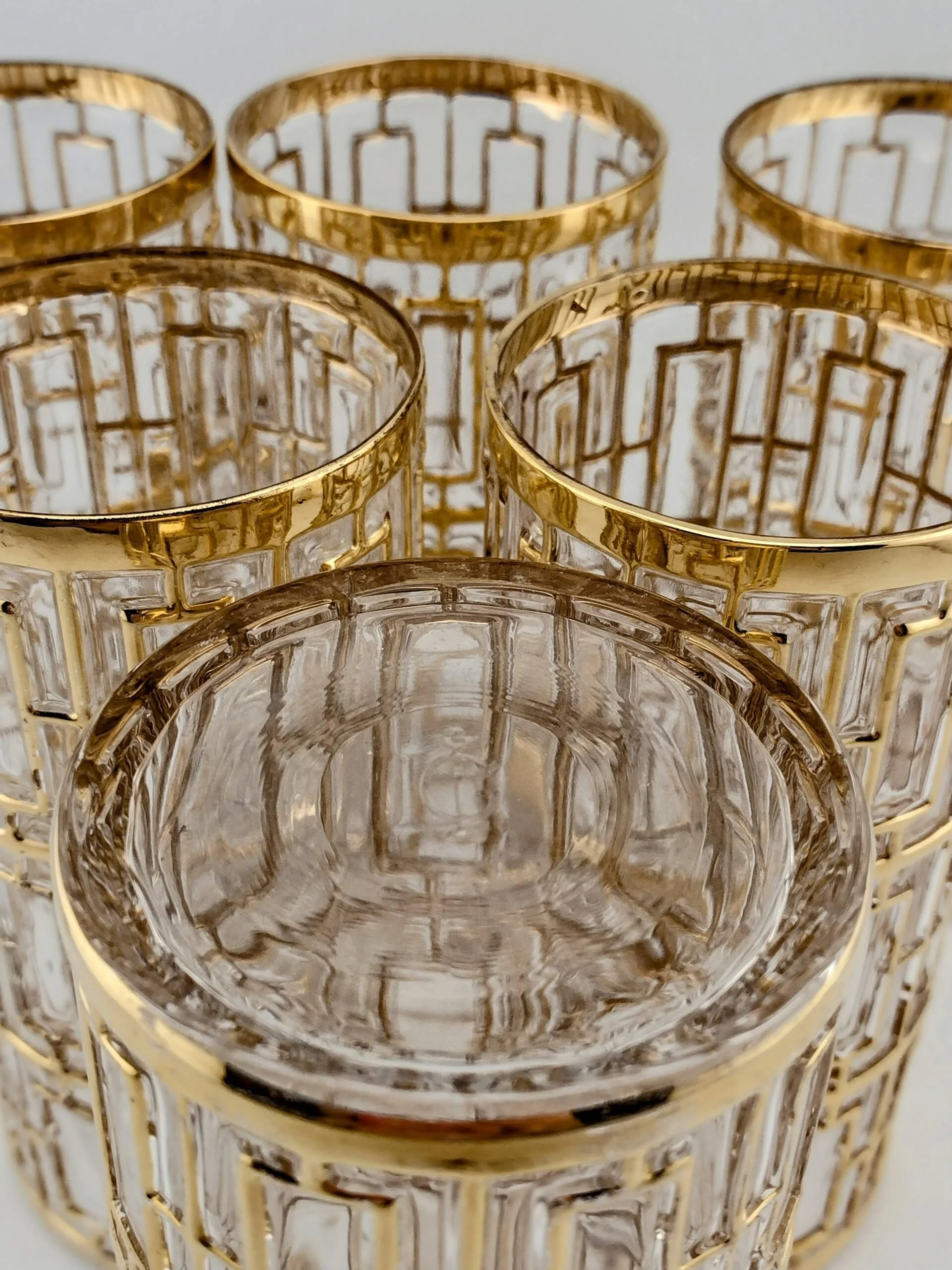 Comes in a set of 4. These are thick, heavy glasses and they have a faint purple hue when in the right light.