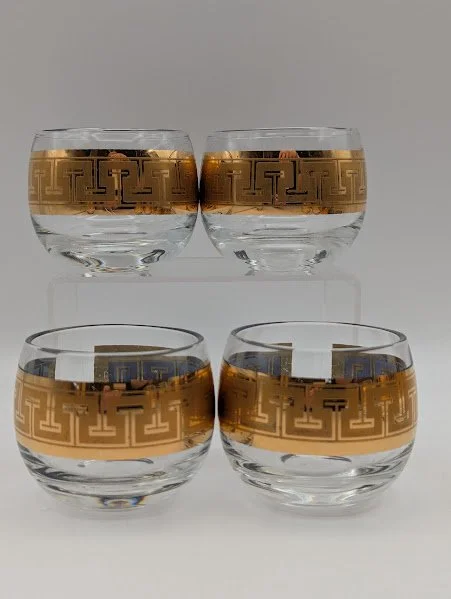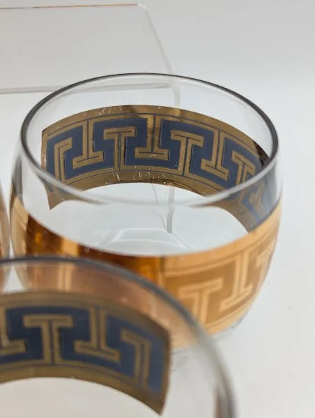Greek Key Cocktail Pitcher Set W/ 8 Roly Poly Glasses