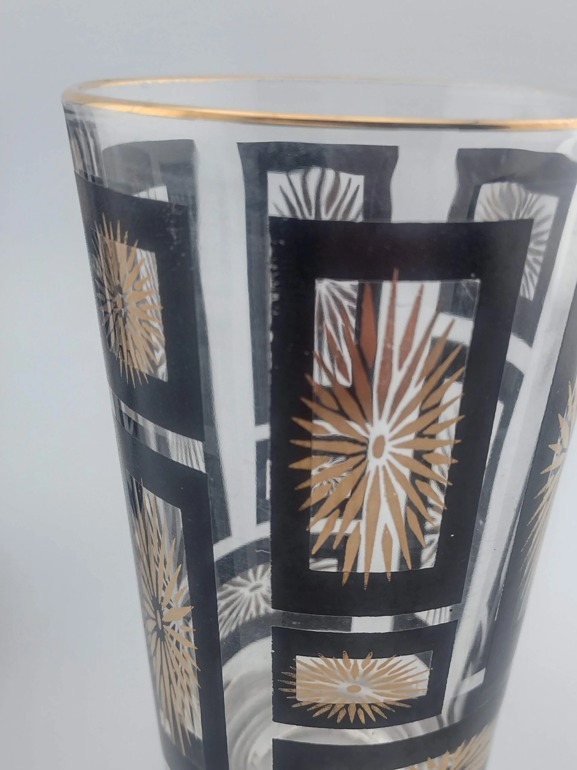 Tiki-decorated glasses with mahogany veneer and metal bands. The company was based in Jacksonville, Florida, but also had facilities in Los Angeles. These decorative mugs were popular in the 1960s and are highly sought after by collectors today