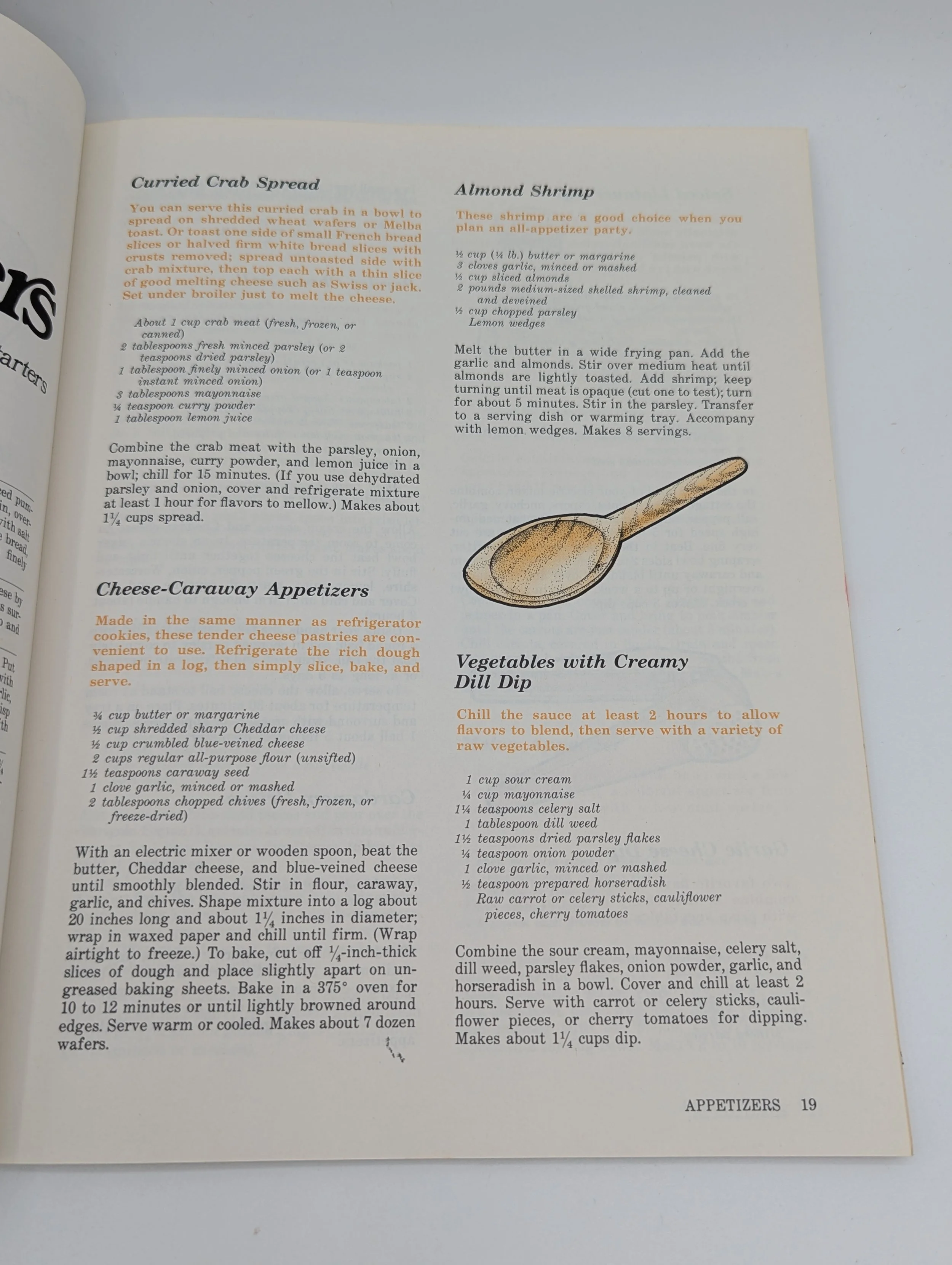 This was part of a cookbook series and is also known as "Booklet #6". The book contains recipes for various types of salads, including main dishes, molded salads, and dressings. It has 68 pages and features some beautiful illustrations.