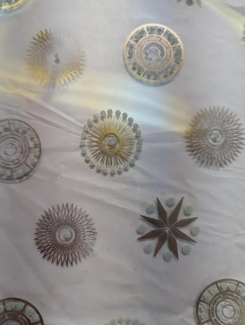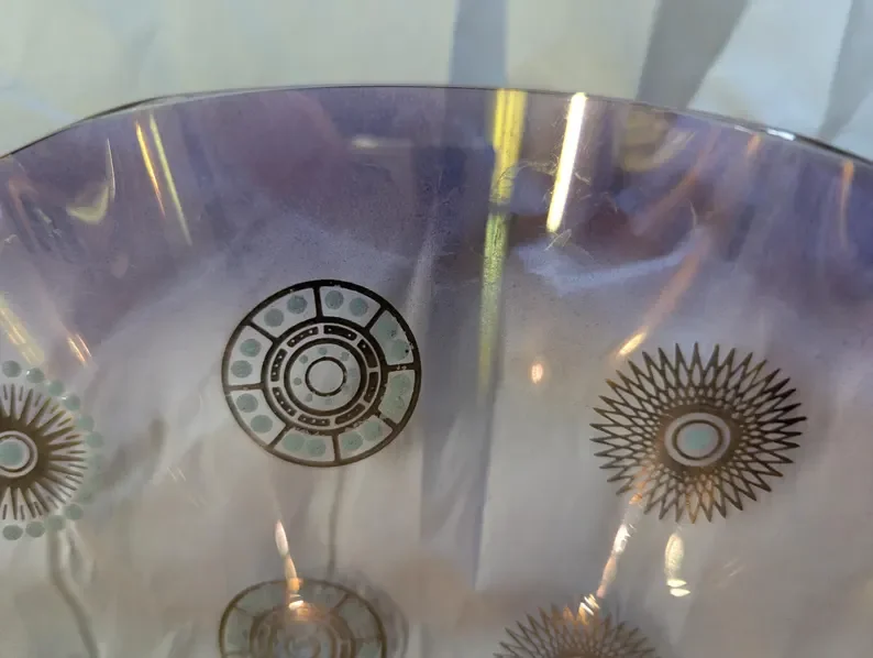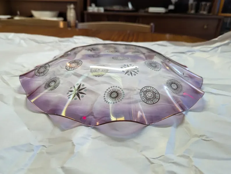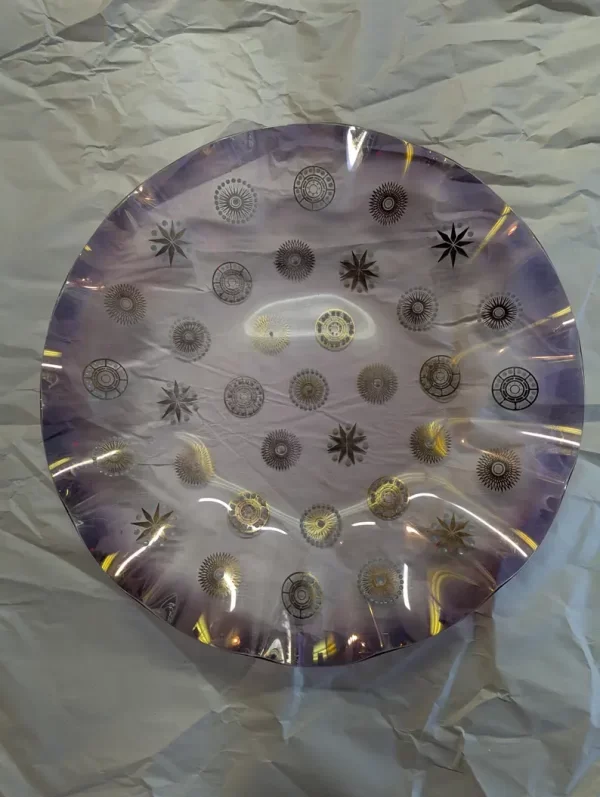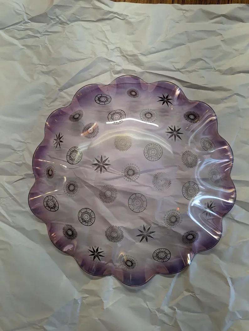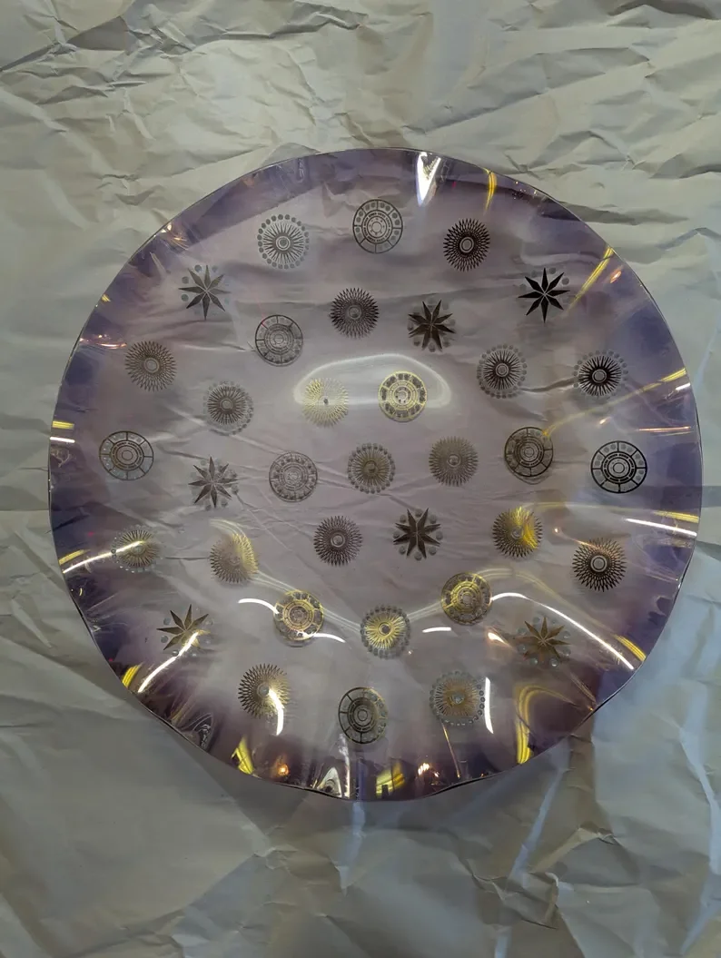 Lovely light purple and gold Dorothy Thorpe Glama Glass Round Tray. Perfect to use or display.