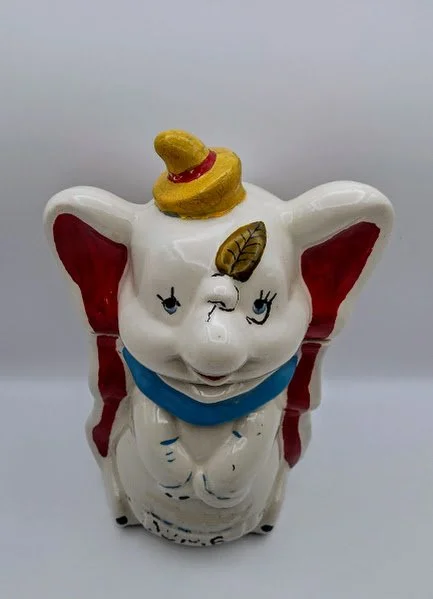 Is this not one of the cutest cookie jars you have ever seen? Dumbo sits 13.5 inches High. Please see photos for condition.