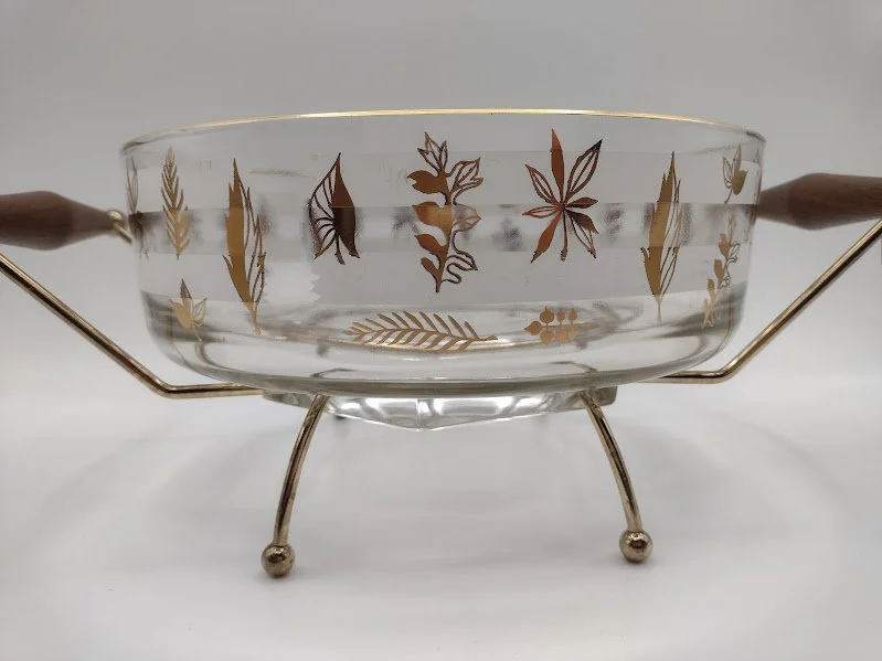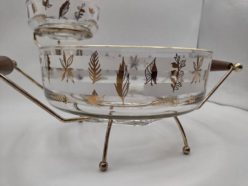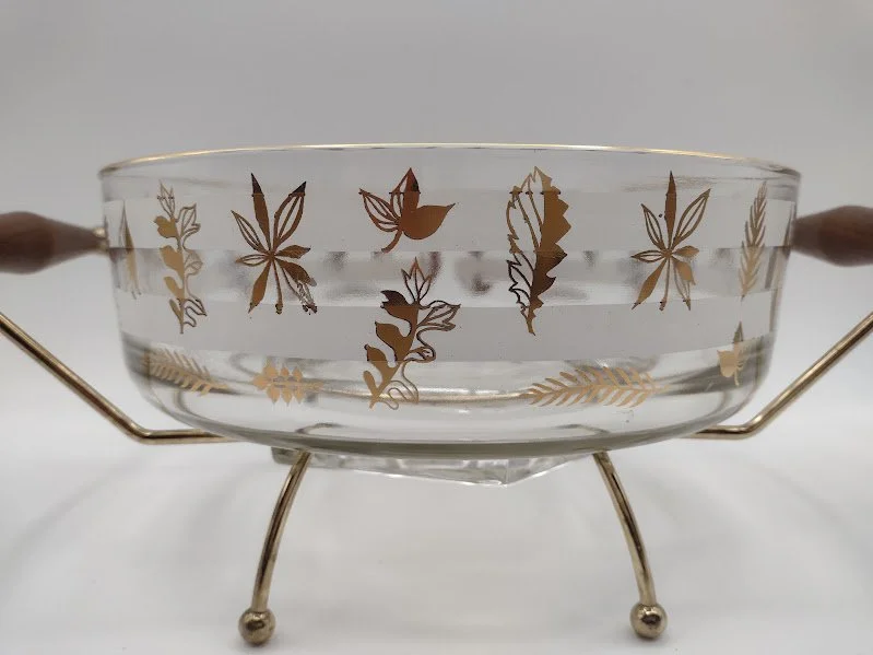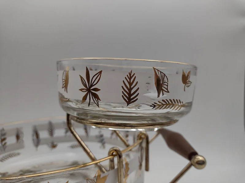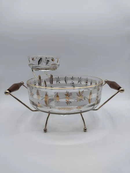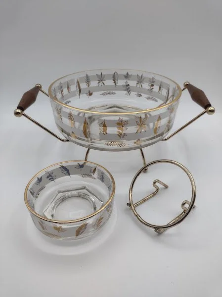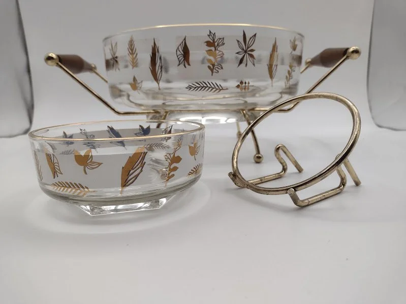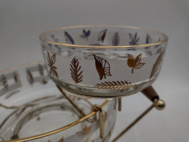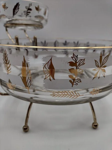 Fire King Delphite Gold Leaf Chip and Dip Set in very good condition.