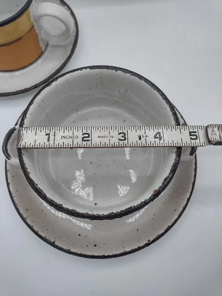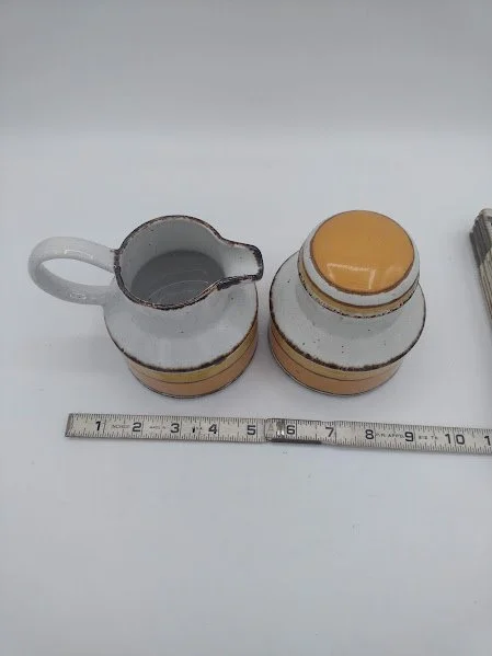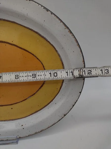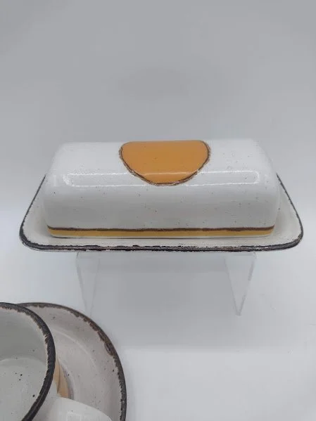 Made in 1967. This is a Spanish revival floral pattern designed by Jerry Rothman on a Rupert Deese-designed shape, becoming one of the best-selling patterns until production ended in 1984. The popular ceramic earthenware line featured stylized flowers and earthy brown and green glazes. Like the Starburst line, this is very practical, durable and can be used everyday.